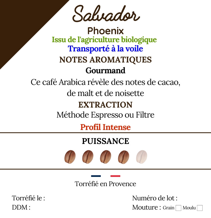 Un café issu de l'agriculture biologique, gourmand et équilibré, aux notes de cacao, malt et noisette. Il est produit par une famille salvadorienne réunie en coopérative et acheminé jusqu’à nous par bateau à voile.
